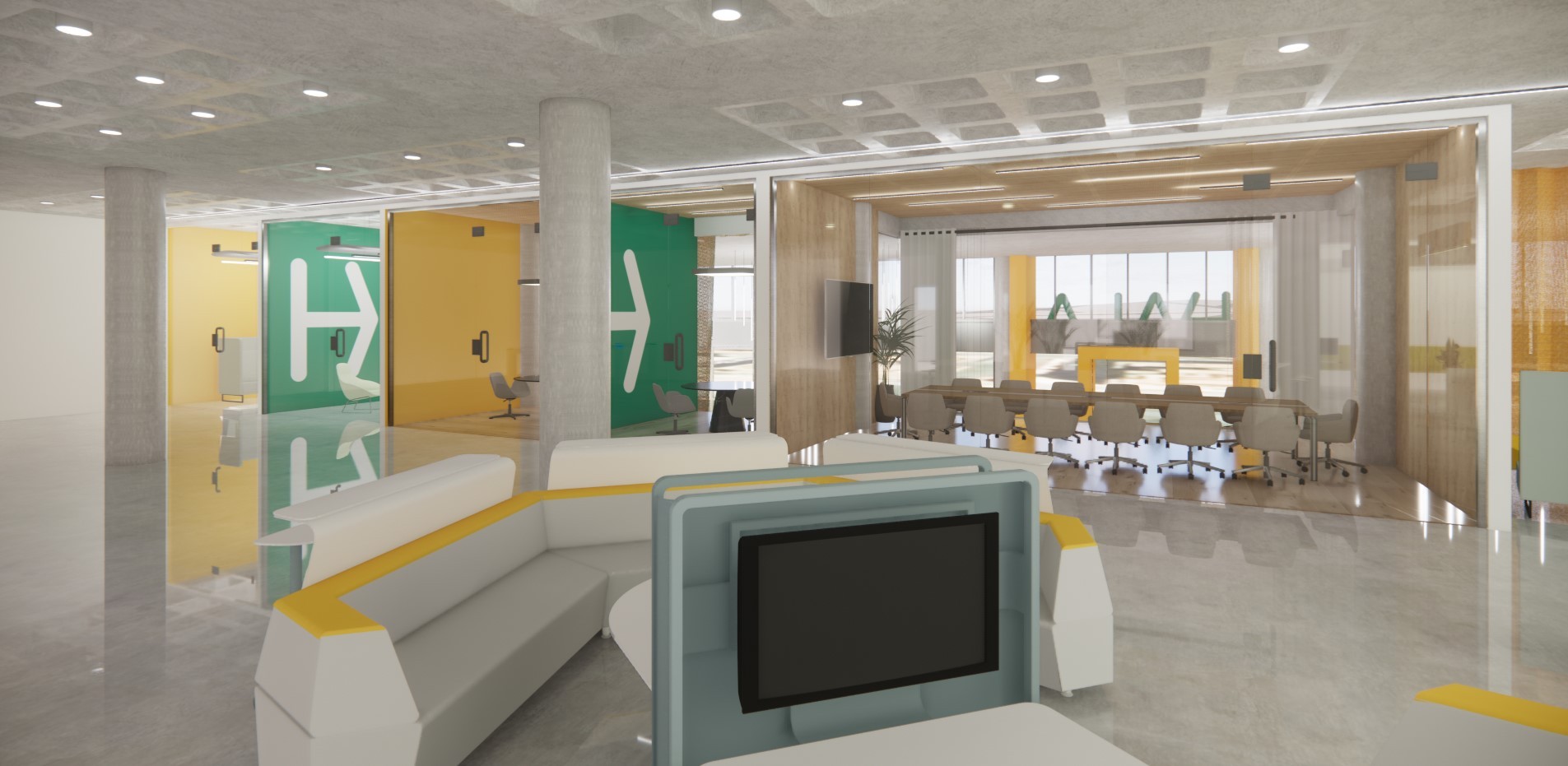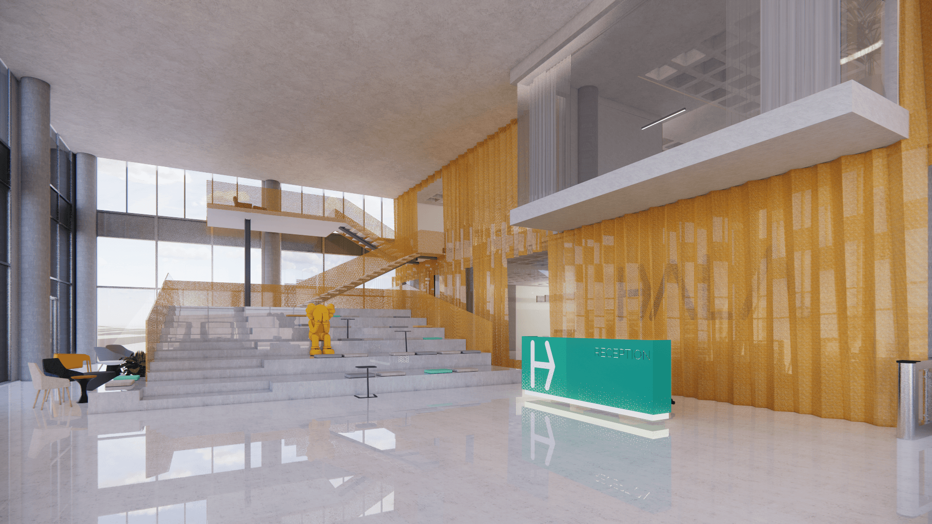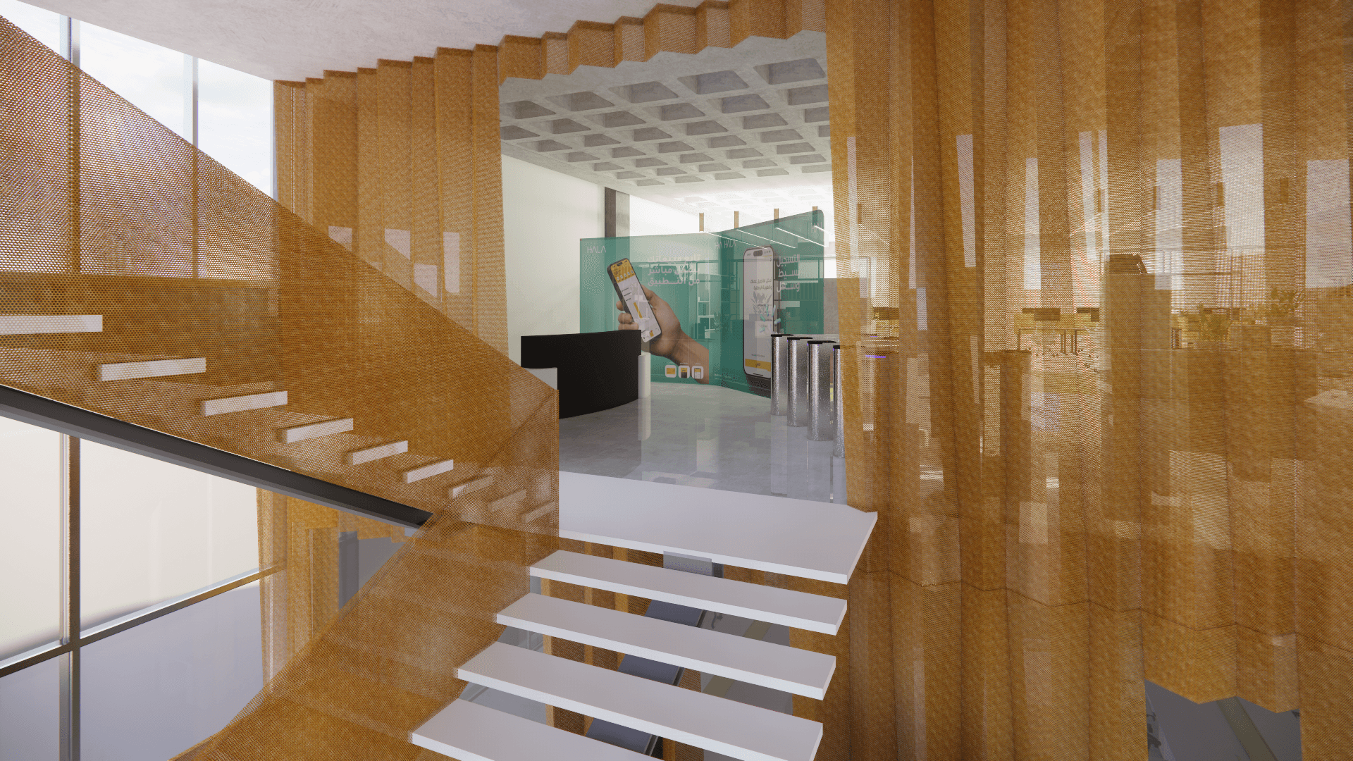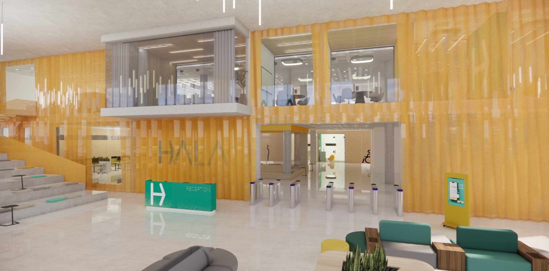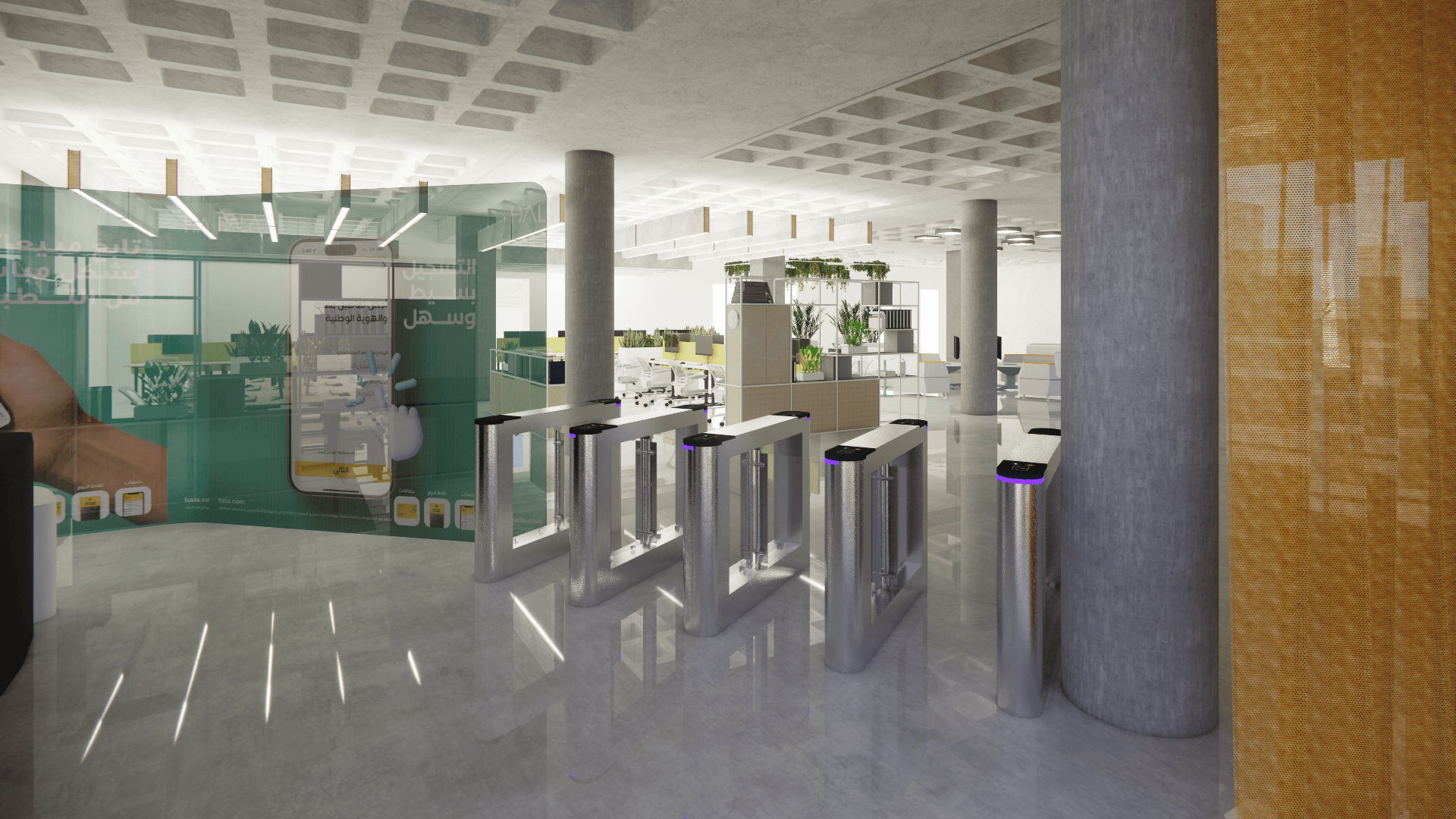 IMMERSE designed the interior architecture and handled FF&E for Hala Fintech’s offices in Saudi Arabia, crafting a dynamic workspace that combines functionality with contemporary design. The layout prioritizes innovation, collaboration, and brand identity, creating a seamless environment that reflects Hala Fintech’s forward-thinking approach to financial technology.